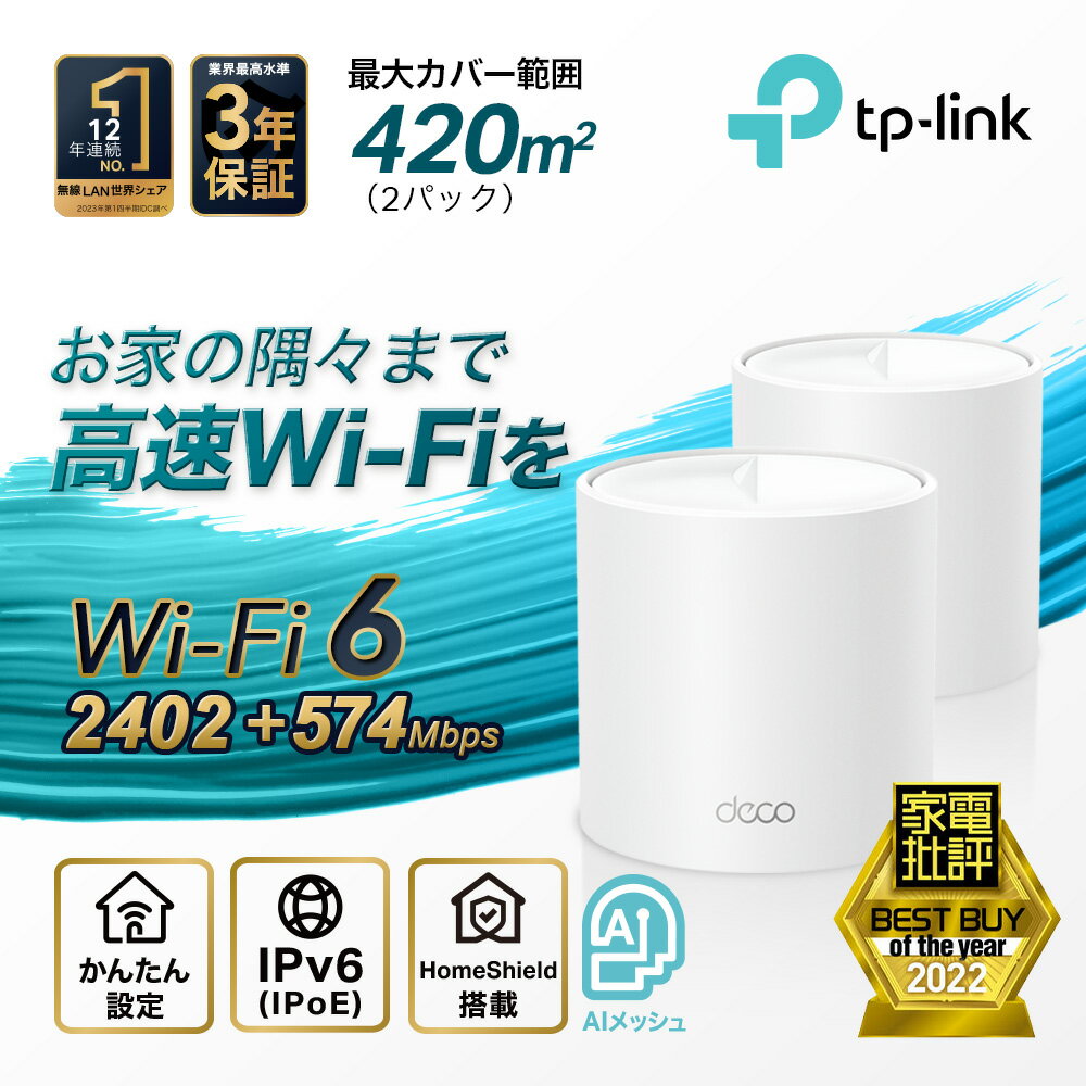セキュリティ:最新セキュリティ規格WPA3に対応し、TP-Link HomeShieldに内蔵されたアンチウイルス機能や保護者による制限機能で接続端末を安全に保護
